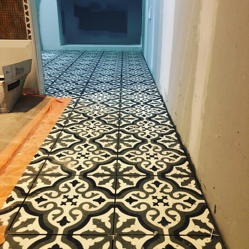 Pose de carreaux de ciment